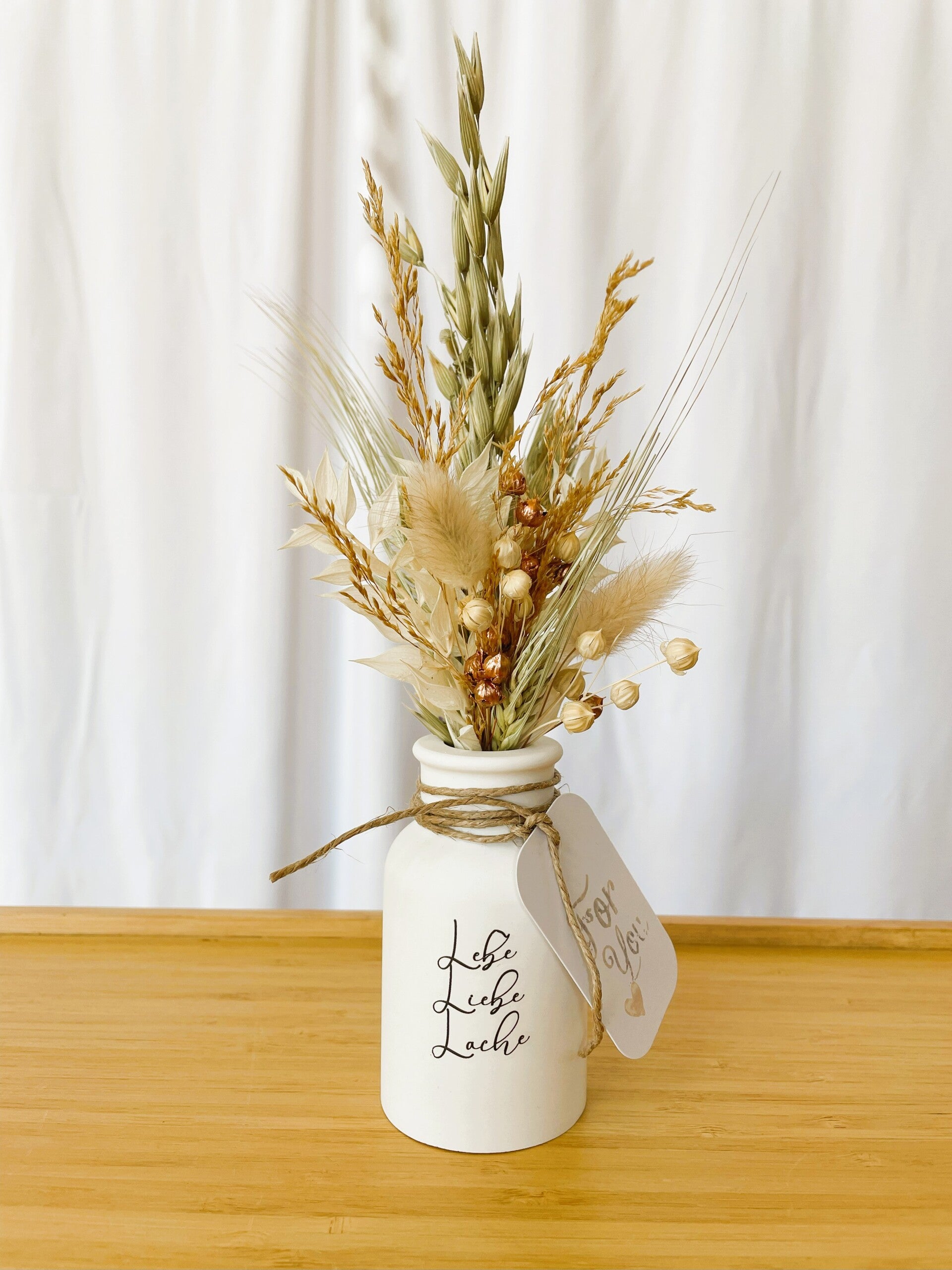Vase mit Trockenblumensträußchen